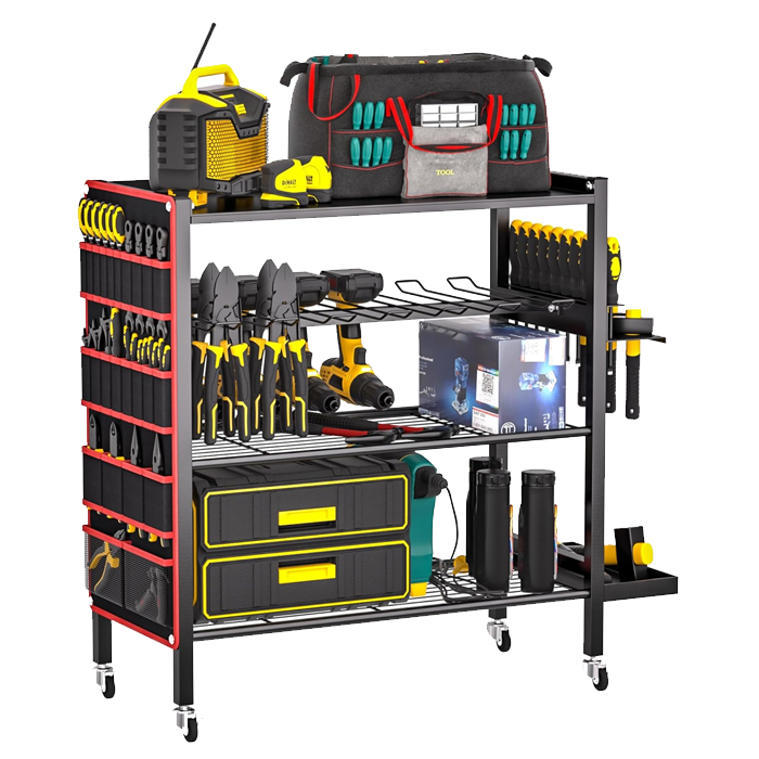 Wall-Mounted Tool Organizer with Adjustable Hooks